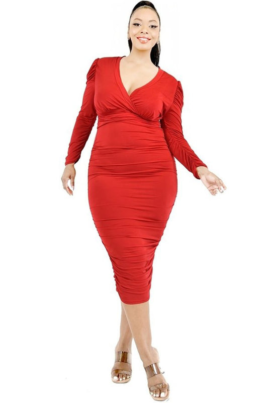 Ladies Plus Size 3/4 Sleeve Shirred Dress