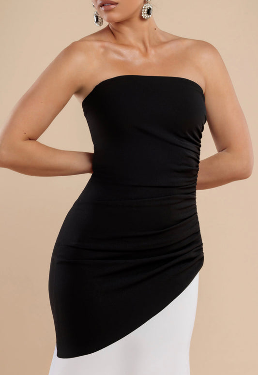 Sleeveless Mermaid Hem Monochrome Contrast Dress