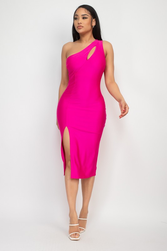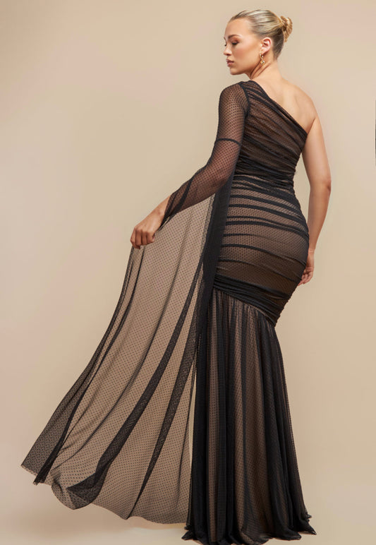 Goddiva Gathered One Sleeve Angel Wing Mermaid Dress