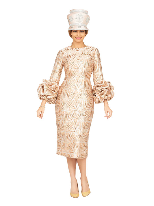 Brocade Shift Dress With Balloon Cuff Sleeve
