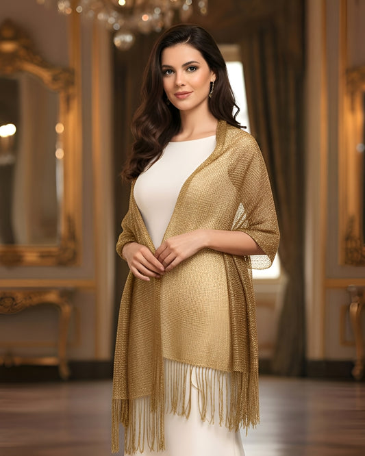 Metallic Sparkling fishnet mesh evening shawl black silver
