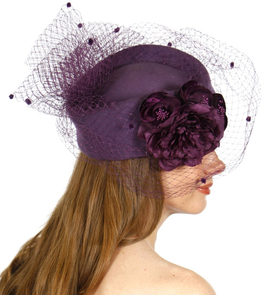 Wool felt veil cocktail hat Purple
