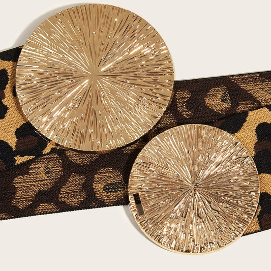 Leopard Pu Leather Alloy Metal Belt