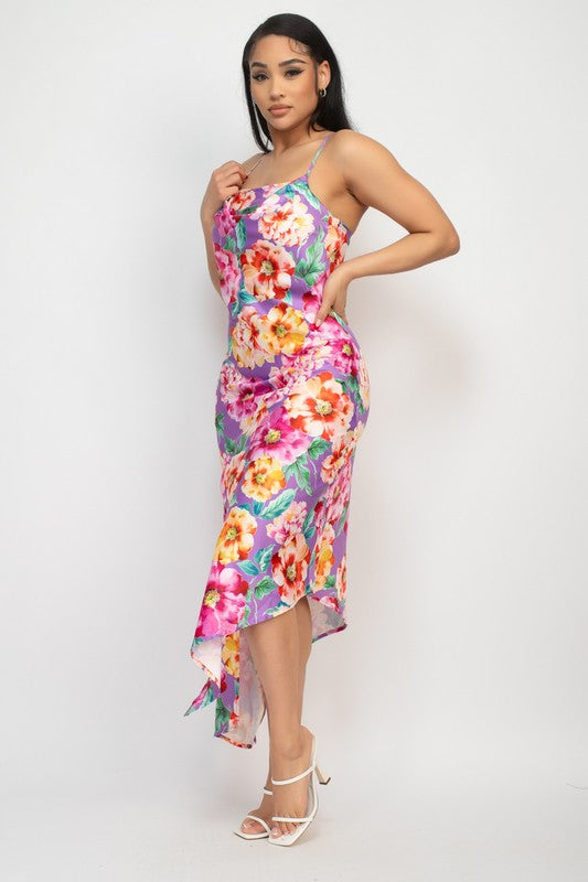 This Floral Slit Asymmetric Midi Dress features a woven fabric that ensures comfort and durability. Designed with a square neckline and adjustable cami straps, it offers a customizable fit. The bodycon silhouette accentuates your figure, while the asymmetric hem and slit add a modern, elegant touch. Perfect for occasions where style and sophistication meet, this midi-length dress combines flattering design with effortless wearability.