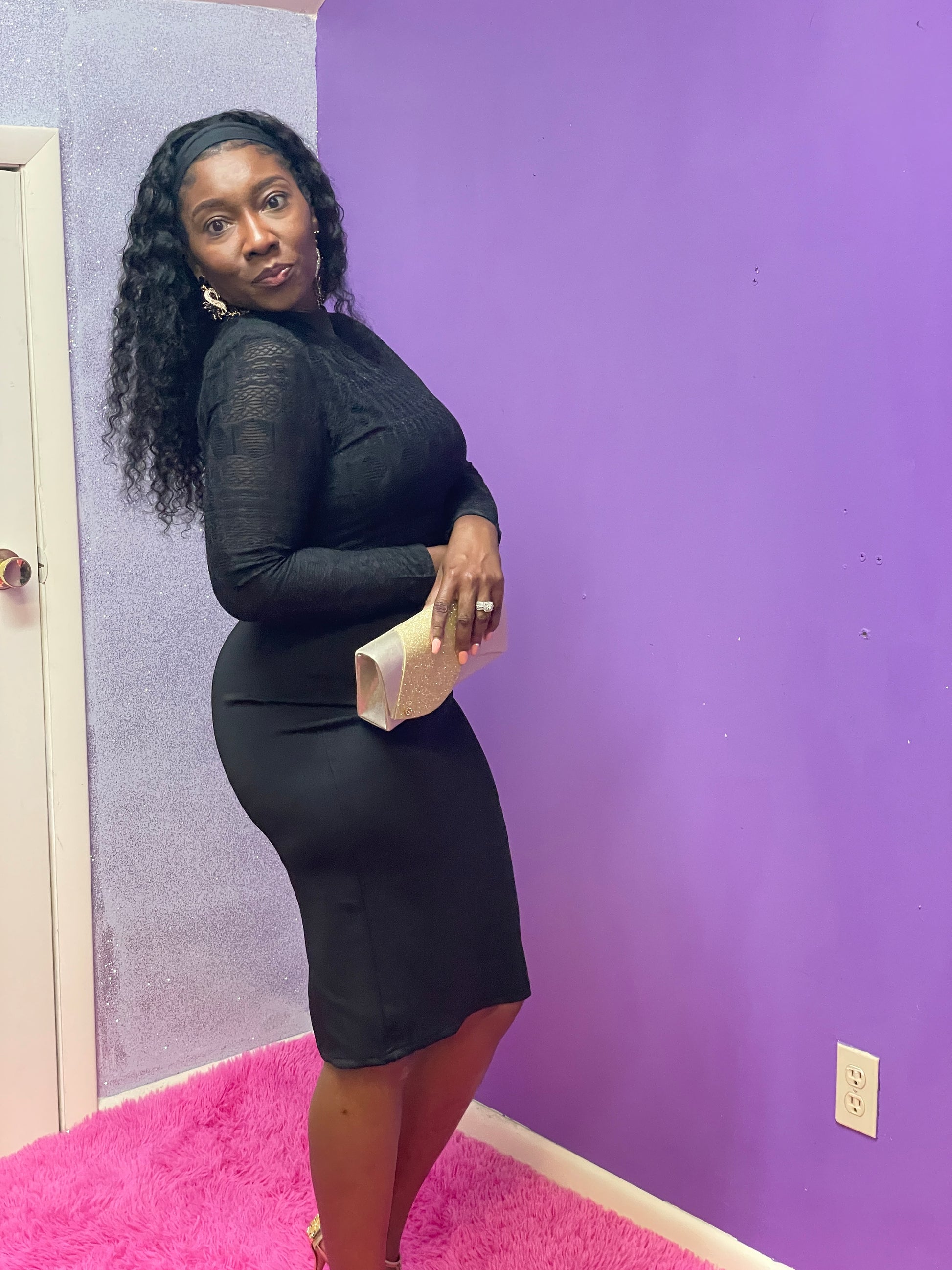 This High Neck Lace Top Black Midi Dress is the perfect combination of elegance and style.