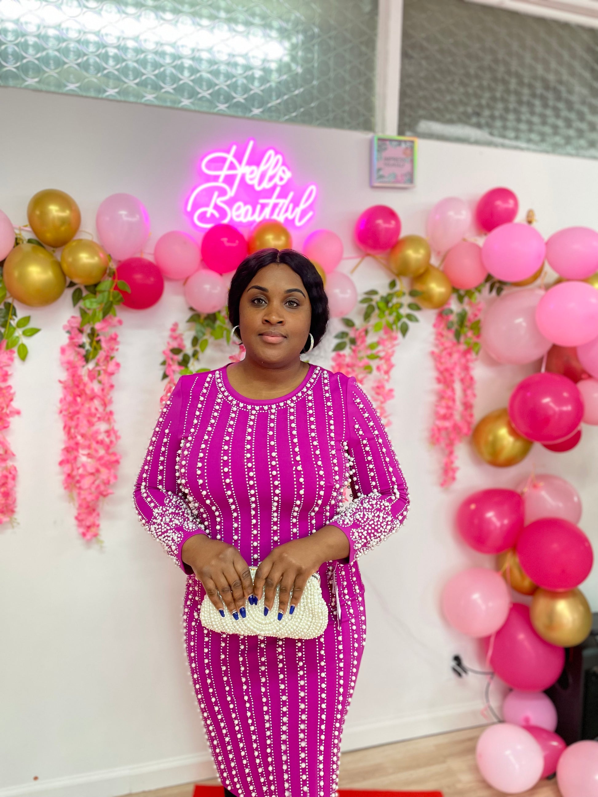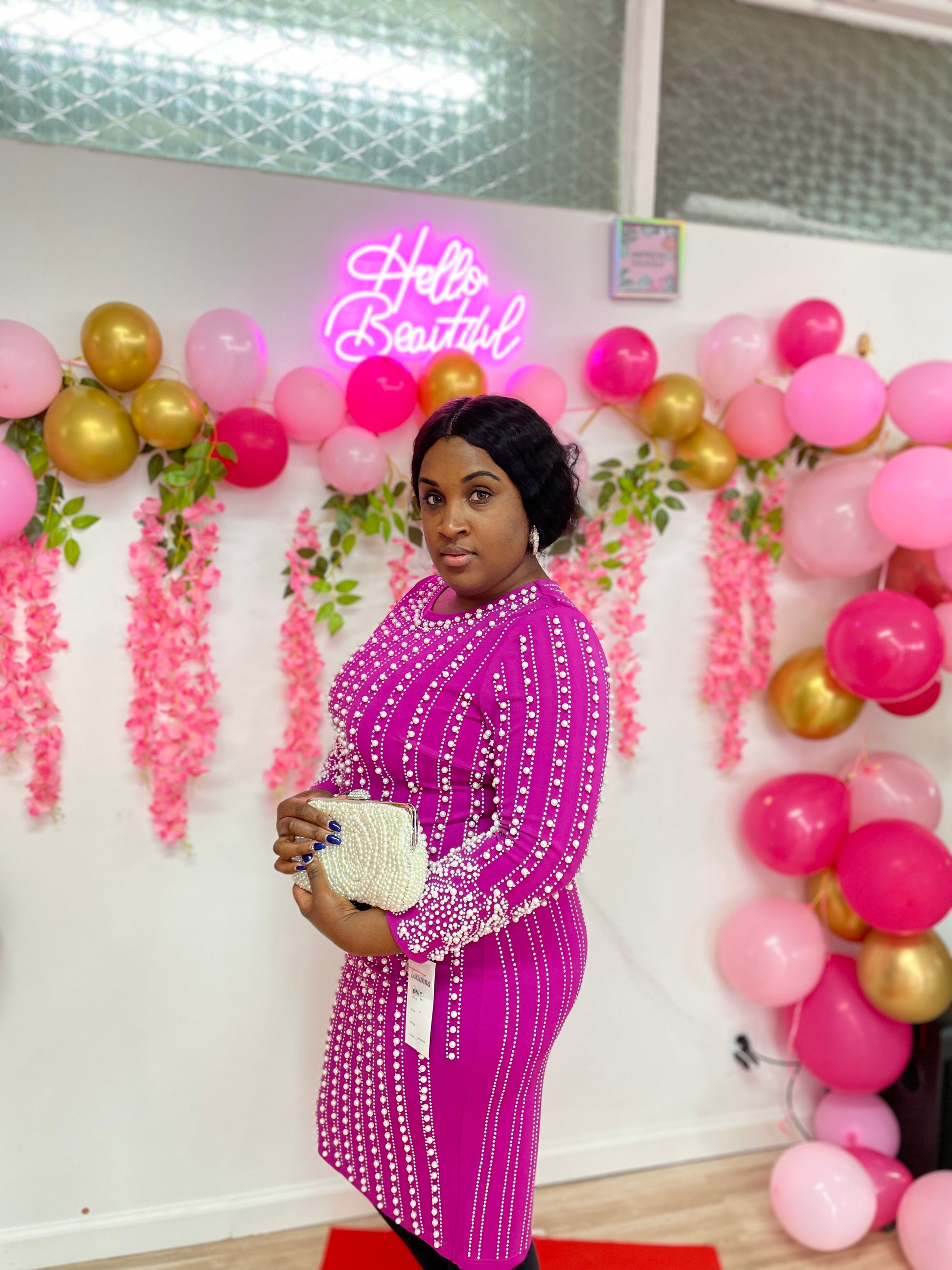 Discover the secret to effortless elegance with this unique cutting edge Fashion forward dress. This dress is made with our finest fabric 95% polyester and 5% spandex, not only is the fabric comfortable but is also stretchable. If you look closely you can see that each pearl is hand-sown and is well tailored to suit your need. This zip closure at the back ensures a perfect fit.This dress is great for weddings, banquet, church, cocktail party, Black tie event you name it.